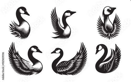 © kardelen, Fototapeta premium Goose vector silhouette icon Set