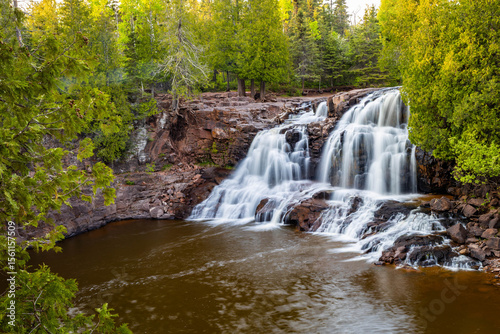 © PhotoSpirit, Obraz premium Gooseberry Falls Middle Falls Sunset