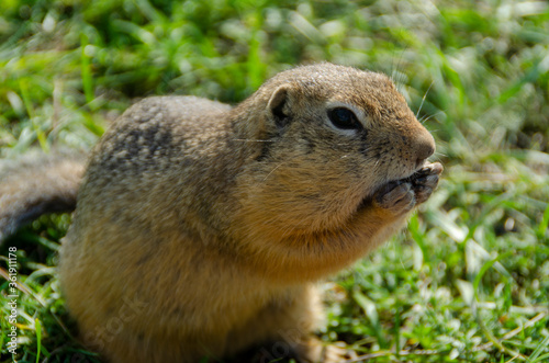 © Виктория Большагина, Fototapeta premium Gopher eats in nature.