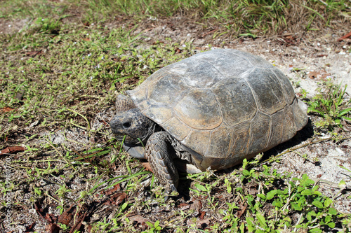 © BeeRu, Obraz premium Gopher Tortoise eating some grass, Florida, USA