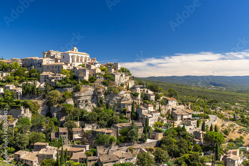 Obraz premium Gordes dominating the landscape in Provence, France, under a blue sky