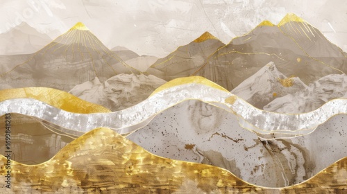 © Small, Obraz premium Gorgeous Abstract Golden Mountain Art: Textured Terrain & Soft Glow for Modern Aesthetic Landscape Background
