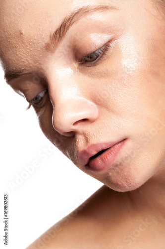 Obraz premium Gorgeous beautiful woman with wet face. Studio photo. Beauty and skin care