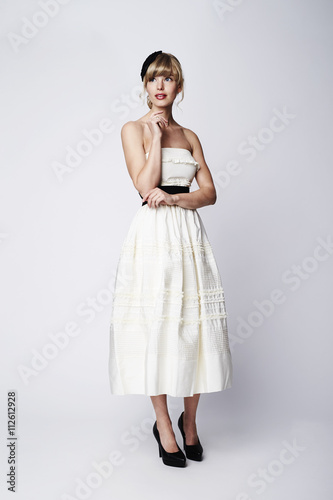 Fototapeta premium Gorgeous bride in white, looking away