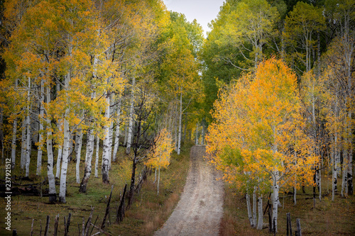 © SEvelyn, Fototapeta premium Gorgeous country road with bright autumn foliage of aspen and birch trees in Southern Utah, USA.