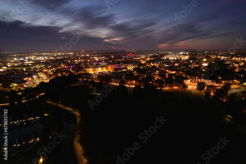 © Altaf Shah, Naklejka premium Gorgeous High Angle View of Illuminated British City at Just After Sunset