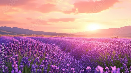 Obraz premium Gorgeous lavender field at sunset, with vibrant purple hues under a colorful...