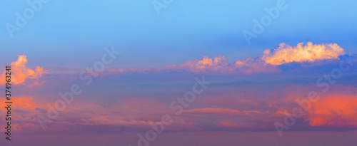 Naklejka premium Gorgeous Panorama view of the dark overcast sky. Dramatic vibrant morning scene at sunrise .