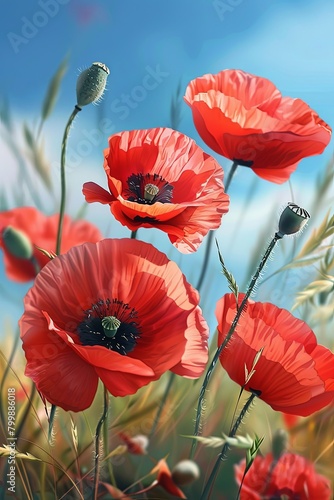 © dekreatif, Obraz premium Gorgeous realistic bright red poppies. A sight to behold in nature.