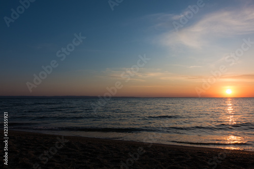 Naklejka premium Gorgeous sea and sky colors in the dusk, Sithonia, Chalkidiki, Greece