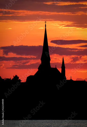 © Lisa, Obraz premium Gorgeous steeple silhouetted sunset.
