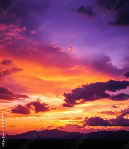 © b, Fototapeta premium Gorgeous sunset sky with orange and purple colors