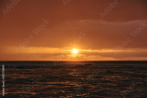 Fototapeta premium Gorgeous sunset with rain and clouds as a cyclone passes through Mauritius...