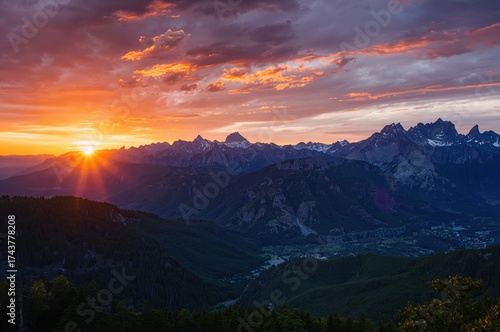 © The 2R Artificiality, Fototapeta premium Gorgeous twilight casting hues over towering peaks