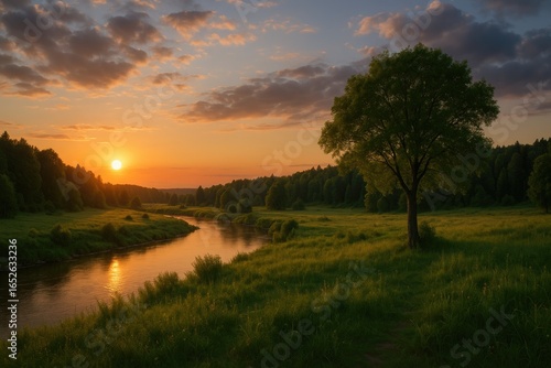 Fototapeta premium Gorgeous vista featuring pristine nature and a sunset horizon