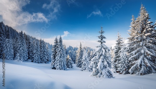 Fototapeta premium gorgeous winter landscape with lots of snow on fir trees wild nordic scene with snow capped conifers