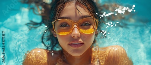 © tongpatong, Naklejka premium gorgeous woman in a swimming pool