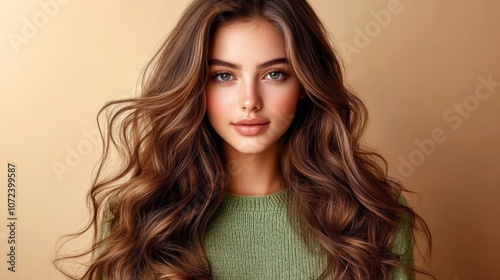 © Unnamed Bird, Fototapeta premium Gorgeous Young Woman with Vibrant Hair Against Warm Background