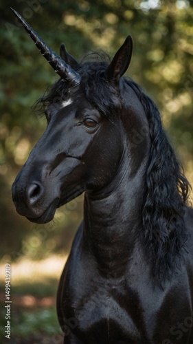 © Anton Pentegov, Obraz premium gorgerous beautiful black unicorn in natore