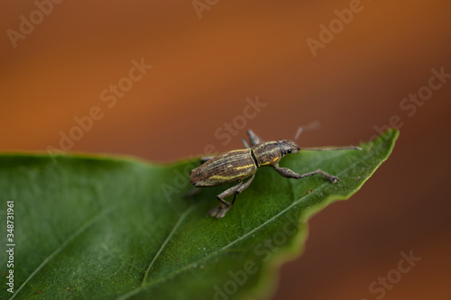 Fototapeta premium gorgojo en una hoja de morrón, foto en macro