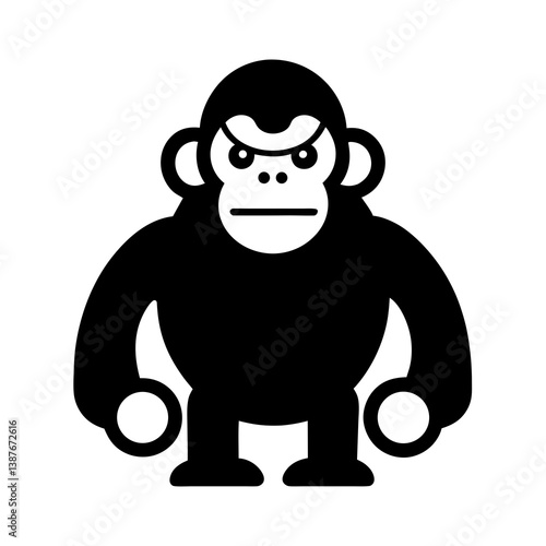 Fototapeta premium Gorilla Cartoon Character With Angry Expression Black Silhouette Vector...