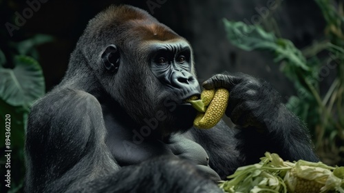 © alindiyani, Obraz premium Gorilla Eating Corn