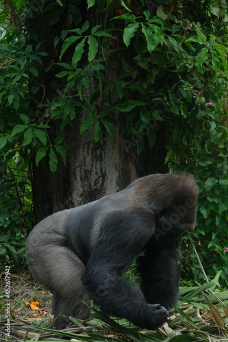 © seraj, Obraz premium gorilla eating in the cage of zoo