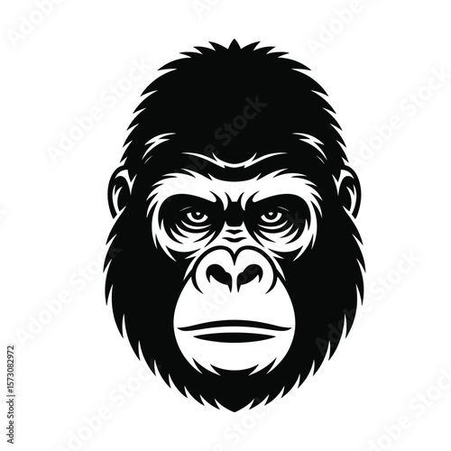 Obraz premium Gorilla face in bold alpha male expression with deep-set eyes and strong features in black and white vector illustration style