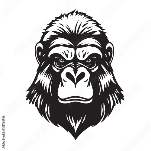 Obraz premium Gorilla head black silhouette on white background. Gorilla Face Icon. Minimal...