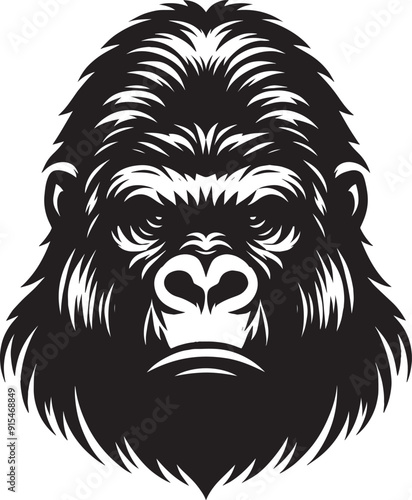 © Md Hasan, Obraz premium Gorilla head mascot Silhouette isolated on white background Minimalist vector