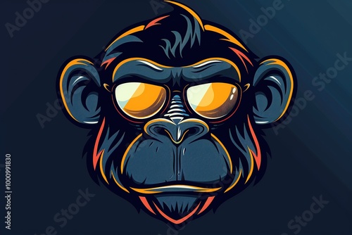 Fototapeta premium Gorilla head vector illustration on a dark background, Mascot Logo, Ai Generated