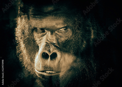 © Vaclav Zilvar, Fototapeta premium Gorilla male in the dark