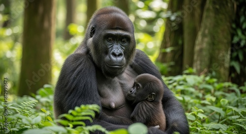Obraz premium Gorilla portrait highlighting strong features, expressive eyes, and natural...