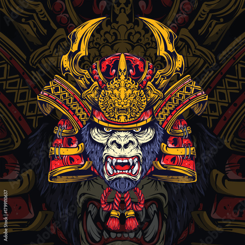Fototapeta premium Gorilla Samurai Warrior Illustration – Powerful Animal Armor Artwork