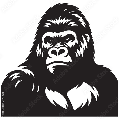 © Zidi Awan, Fototapeta premium Gorilla silhouette black and white vector icon