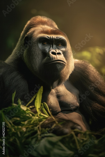Obraz premium Gorilla, Wildlife Photography, Generative AI