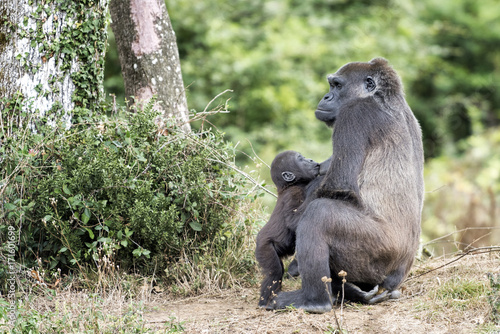 © Pascal Martin, Obraz premium Gorille de 1 an tête le sein