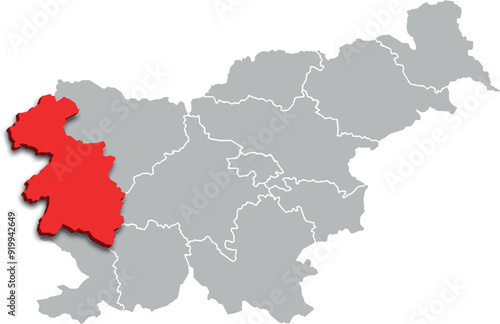 © WALDIR, Obraz premium gorizia region map ADMINISTRATIVE DIVISIONS of SLOVENIA 3d isometric map