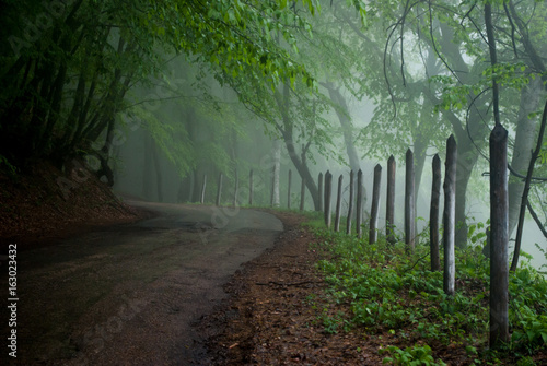 © Gennadiy, Fototapeta premium Górska droga w mglistym lesie