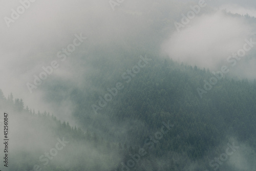 © Piotr Szpakowski, Obraz premium górski las we mgle