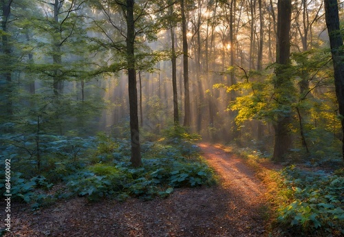 Fototapeta premium Gossamer Groves: Maryland's Enchanted Forest Morning Hues