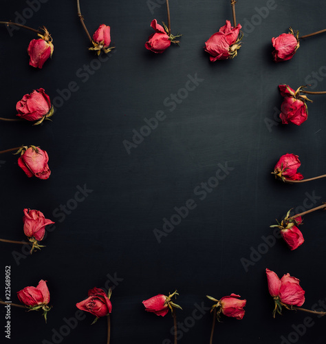 © nikkytok, Naklejka premium goth style dry red roses on black background