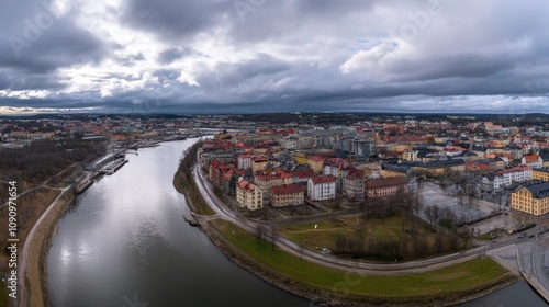© Ebru, Fototapeta premium Gothenburg drone shot, cloudy day.