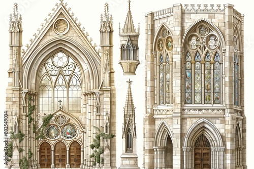 Fototapeta premium Gothic Architectural Icons: Pointed Arches, Ribbed Vaults, Stained Glass,...