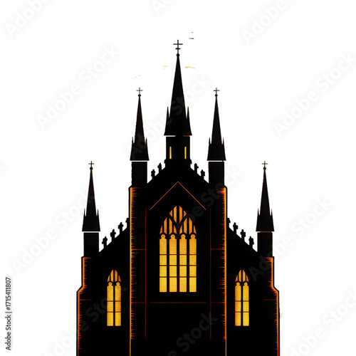 © creativemahfuz, Fototapeta premium Gothic Architecture Silhouette with Illuminated Windows Against a Checkered Backdrop Illustration