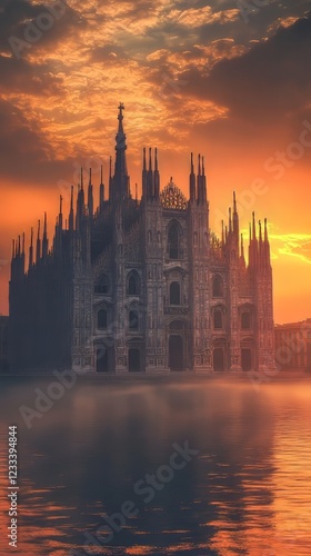 © KOOLAIDMAN100X, Obraz premium Gothic cathedral at sunset's glow