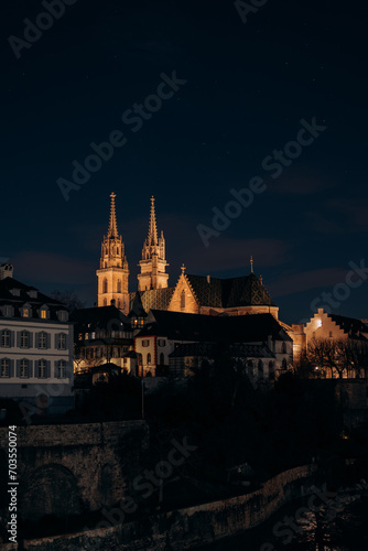 © Andrii, Fototapeta premium Gothic cathedral in the evening, old historic cathedral glows at night