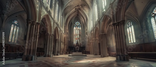 Fototapeta premium Gothic cathedral interior, majestic architecture, spiritual atmosphere