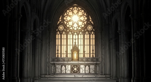 Fototapeta premium Gothic Cathedral Interior With Ornate Window