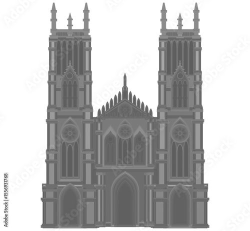 Fototapeta premium Gothic cathedral vector with twin towers and pointed arches